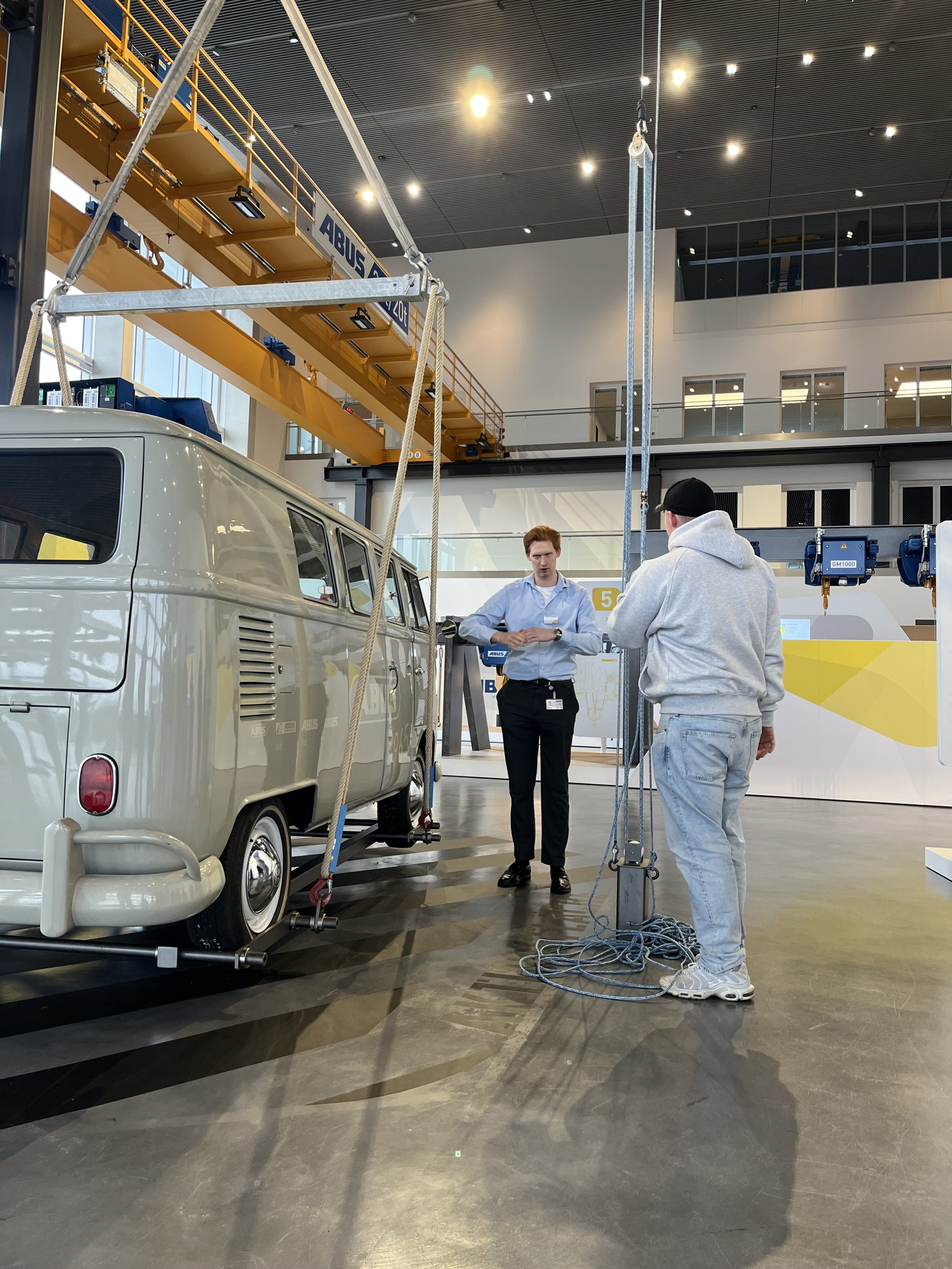 Vom modernen Produktionsablauf bis hin zu interessanten Einblicken in die Entwicklung und Funktionen der einzelnen Produkte durften wir das Team von ABUS begleiten. Den Tag begannen wir mit einem leckeren Frühstück, bevor wir uns auf den Weg zu unserem Ausflugsziel machten. Vor Ort wurden wir herzlich empfangen – und es erwartete uns eines der Highlights von ABUS: das Kranhaus! Hier konnten wir selbst mit verschiedenen Systemen arbeiten und erhielten spannende Informationen zu den technischen Funktionen, Entwicklungen und der Geschichte von ABUS.
