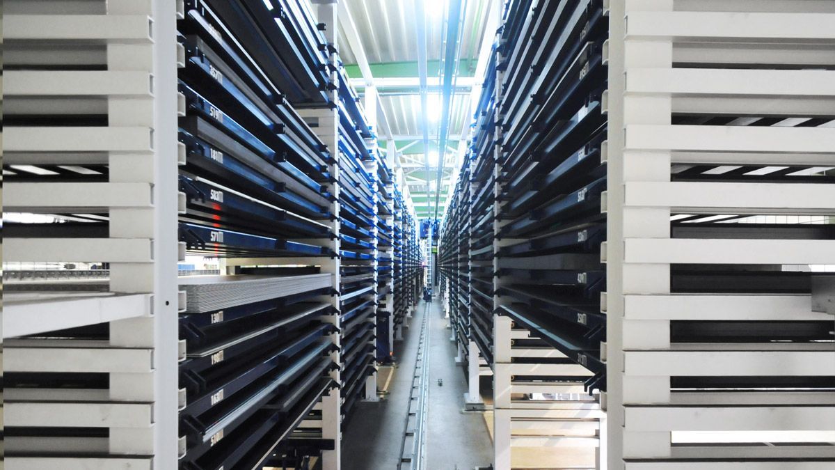 Dank unserer strategisch ausgerichteten Lagerstruktur versorgen wir unsere Maschinen vollautomatisiert mit Material, steigern die Effizienz und reduzieren Kosten.